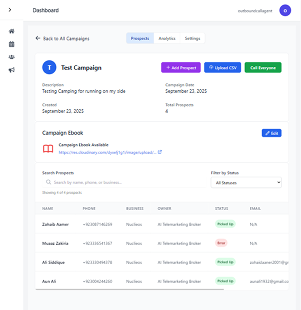 Say goodbye to scattered spreadsheets and manual dials. Manage prospect lists, scripts, and campaigns in one unified place.